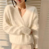 Imagine yourself wearing this white mohair sweater on a winter evening, your silhouette standing out elegantly against the dark background of the night. You feel both comfortable and refined, the very embodiment of old money elegance. You are the center of attention, and you can only savor this moment.